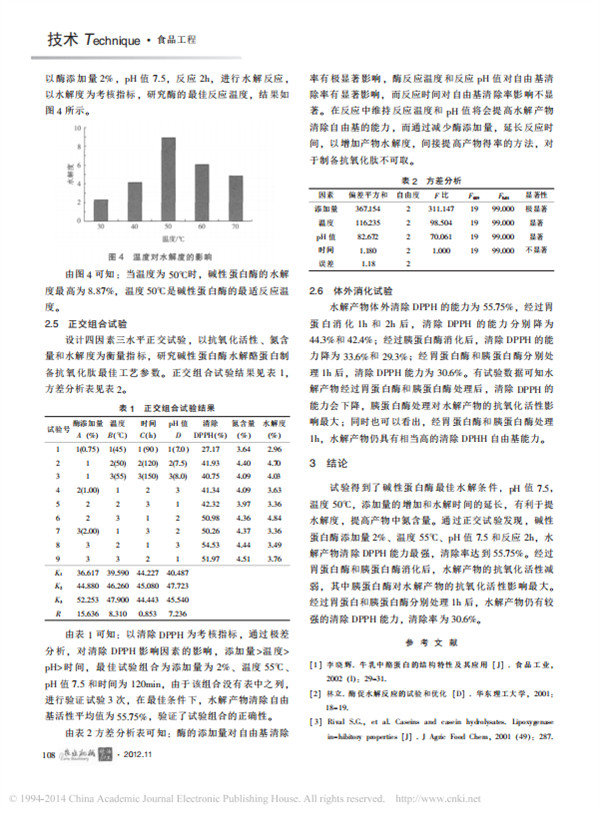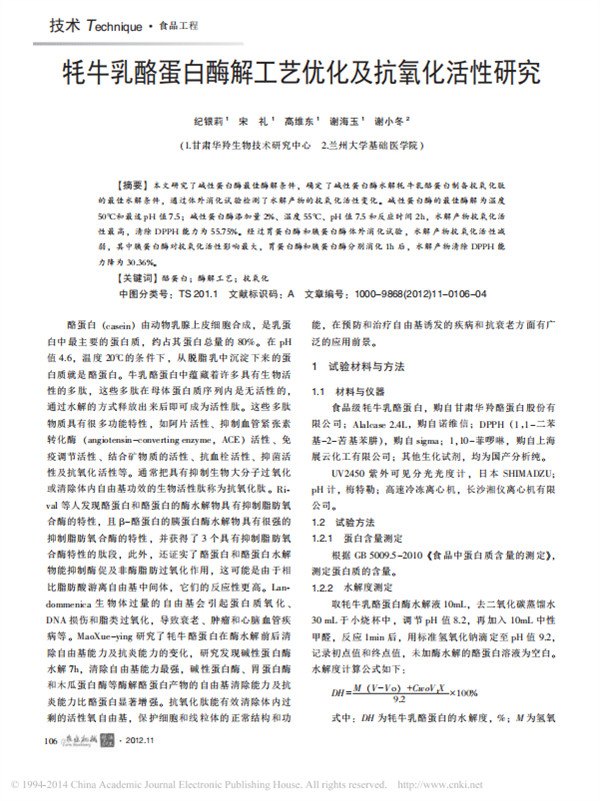 牦牛乳酪蛋白酶解工艺优化及抗氧化活性研究